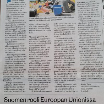 Kuvassa aiemmin täällä viikolla laajalevikkisessä Surkkari-lehdessä julkaistu kirjoitukseni, jonka luettuaan eräs ihana ihminen, jolla on ollut liikaakin valinnanvaraa hyvien ehdokkaiden suhteen, laittoi kannustavaa viestiä: ”Kyllä minä nyt tiedän kenelle mun ääni menee” He, ketkä minua ovat seuranneet jo pitkään, selvästi uskovat potentiaaliini tehdä ihmeitä, mutta kuplan ulkopuolella moni saattaa ajatella minun olevan vain yksi uusi …